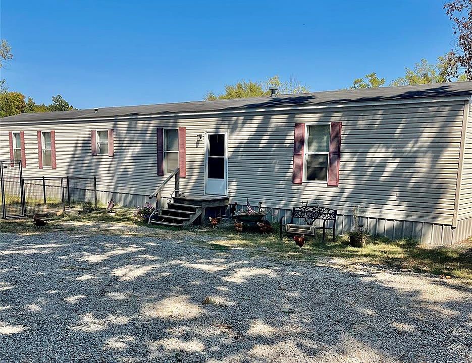 Looking for that small mini farm? This 8 acres m/l, has a newer 3 bedroom, the primary bedroom has a nice walk-in closet,2 bath mobile home and all appliances, fridge, dishwasher, oven/ range, and washer/ dryer, 2 portable double carports. This is an immaculate home. Outside you will find 8 acres m/l that is completely fenced and cross fenced and has 6 strands of barb wire, along with electric wire at the bottom, 5 separate large areas are fenced to move horses or sheep into fresh areas. This property comes with a chicken coop and dog pen, with electric and storage room for hay. There is a small wooden cabin with a little TLC, you could use it as a rustic cabin. There are 2 outside water hydrants along with a pond on the property. After you have worked all day, you can cool off in the extra large above ground pool. This property is 5 minutes from Current River and a short drive to Mark Twain National Forest. If you are looking for a lot, and not spend much, this is it!
