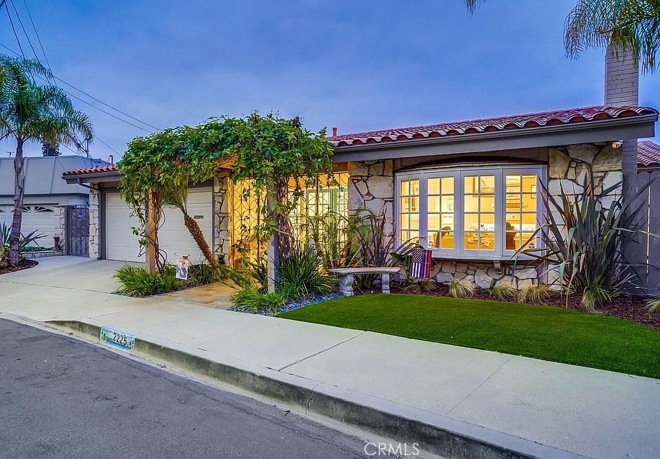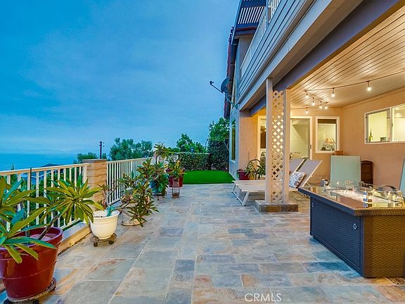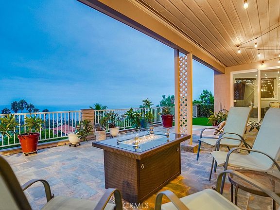 Views, Views, Views !!  Spectacular South Shores home has unobstructed views of the ocean and Catalina.  This spacious tri level coastal gem has been lovingly upgraded to meet the highest standards.  As you pull up you are greeted by a lush covered entry with double french doors.  From the moment you enter the main level, the ocean view makes it's grand appearance and can be seen from almost every room in the house.   Main level features a large living room with high ceilings, a gas fireplace with PV stone hearth, and lots of windows to enjoy the views.  This level also has a direct access  2 garage with custom flooring and added storage. Lower level features a designer kitchen with lots of counter space and storage.  There is ample recessed lighting and Cambria quartz counter tops.  A custom counter depth refrigerator (Liebherr) and Bosch dishwasher are discretely hidden behind pannels that match the cabinets.   Large kitchen island 68" x 50" adds added storage and a dining area.  Formal Dining room has crown molding and recessed lighting on dimmers that will set the tone for any event.   This level also includes a full bedroom and bath with direct porch access.  The back porch is where you will fall in love with this property.  It offers a large seating area, a mobile fire table for heat and ambiance, amazing views, and a small grass patch for pets or sunning.  The family room has vaulted ceiling with sky lights and a loft area.   Underneath the family room floor is a built in swimming pool that could be revived.  It was closed off with permits.  Upper level features 3  spacious bedrooms and a balcony with more amzing views.  BONUS  - look at the how big the lot size is!   Enough room to add an ADU, or maybe even  a second full sized house OR possibly subdivide the lot and recapture an large part of your purchase price.  Property runs from street and includes access from the street below.