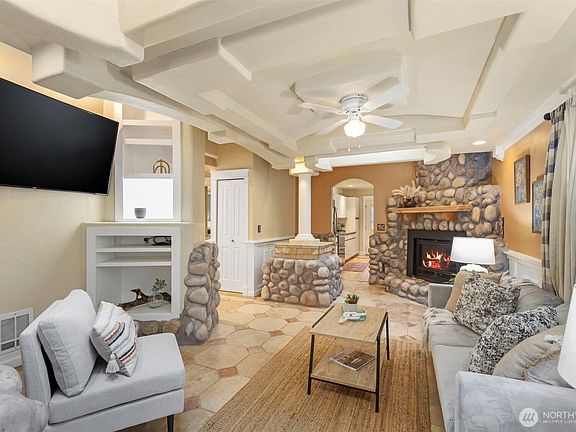 Out of a Storybook, come see this Whimsical Poulsbo Rambler! 2 beds + 2 baths + Dedicated Office! Unique finishes. No carpet! Spacious living room has a propane fireplace with stone surround. Kitchen has newer stainless steel appliances with a double oven. Primary suite has a full ensuite bath and door out to the picturesque, private, & fully fenced backyard. Truly a gardeners dream! Deep 2 car garage has space for extra storage. Short commute to Kingston Ferry. Miller Bay Estates has a clubhouse, community pool, & park.