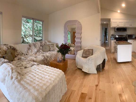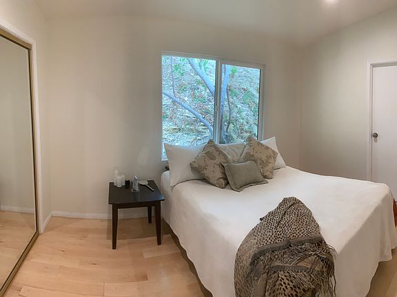 Private 3 bedroom 2 bath house with beautiful mountain views, gorgeous sunrise and sunsets from your windows. Secluded country cottage on gated estate property. Newly remodeled with all new stainless appliances, wood and marble tile floors, granite counters, custom cabinets. Bath tub, walk-in shower, laundry room with washer and dryer, central heat and AC, FIOS high speed wifi internet. Private yard, front and back patio decks, plenty of parking. Playground, fruit trees, pool/spa avail. Privacy and solitude but just a few minutes away from the major Calabasas and Topanga Canyon shopping centers and the 101 freeway. Perfect for a couple and great for a musician, producer, filmmaker, editor, artist, writer. Partially Furnished or Fully Furnished. No pets, No cigarettes. Available almost immediately. $4695/mo plus utilities, 2 months rent for deposit, 1 year lease. Must call for appointment. One year lease $4,695/mo plus utilities; two months rent for Deposit. No smoking, no pets.