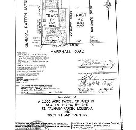 Vacant...Great Industrial location ! Easy access to I-12 corridor. Located just North of I-12 off Hwy 59. Partially cleared, high and dry. 125 feet of road frontage. Access from Marshall Road and General Patton (Parish Roads). Can also be used to access rear portion of the property. Zoned I-2.