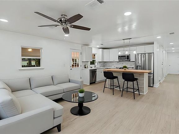 This beautiful three-bedroom, two-bath home sits on nearly half an acre in a great school district and offers easy access to the interstate — all at a fantastic price. A total renovation, this home blends modern comfort with thoughtful design. This is a total renovation with everything replaced and shows like new construction. The open floor plan feels spacious and inviting. The kitchen offers quartz counters and a butcher block island plus stainless-steel appliances including the refrigerator. The large laundry room adds convenience, while the upstairs suite provides a private retreat. There is lots of closet space too.