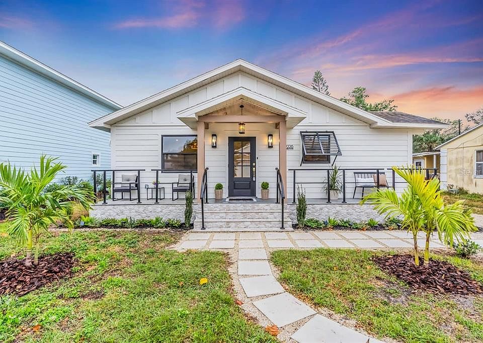 Welcome to your future oasis in Sarasota! This beautiful modern cottage is in the heart of Arlington Park, includes separate entry guest house/pool house which owner just added covered patio space now and perfect for a future pool. It is now the perfect canvas for your cozy coastal retreat. Fully renovated in and out, includes new kitchen, baths, impact windows and doors, fireplace, flooring, painting, lighting, closets, siding, interior doors, exterior millwork, landscaping, tankless water heater and much more. The home maintains the charm of Arlington Park while bringing in modern touches. The exterior of the home finishes has been completed updated. In addition, new soft element landscaping design was added which creates the serenity that is very calm and relaxing. Upon entering the home the living room has a custom built shiplap fireplace, with modern surround matte fluted tile which draws you to the heart of the space. Perfect for gathering with family and friends while you entertain. The custom millwork is also displayed in the open wood shelving throughout the home. The all new kitchen is a blend of modern clean lines, slim shakers - two toned oak stained style cabinets, open shelving, brass finishes, Zellige tile, quartz countertops with peninsula bar seating and all new stainless steel appliances. The large primary bedroom makes the perfect retreat with sconce lighting and large walk in closet. The ensuite has tranquil travertine tiles, brass fixtures, the wood fluted vanity fits like a perfect piece of furniture, arched wall lit shelving, warm organic wood tones and serene tiles creates a tranquil atmosphere. The second bedroom is very bright with light filling the room, a large closet and space for many options. The second bath has the perfect coastal touches, shiplap walls, polished chrome hardware, warm wood tones and navy porcelains tiles to add a modern touch. Additional storage is also available to store your seasonal items/belongings in the pull down attic. The laundry/mudroom has the option to be shared by guest house. As you exit the mudroom door the new concrete pavers will lead you to the new pool/guest house. This is the perfect hangout while you enjoy the future pool or grilling. Here you have your own private living space, aqua tiled kitchenette and full bath. Perfect for guest in town, play or work space the options are unlimited. The backyard has two patios one is covered and perfect for quiet evenings under the lights or entertaining family and friends. The second patio is great for outdoor grilling and dining. All room sizes, measurements to be verified by buyer. This home is walkable or bikeable to South Side Village, restaurants, grocery shopping, boutiques, Legacy Trails, Arlington Park Aquatic Complex and Sarasota Memorial Hospital.
