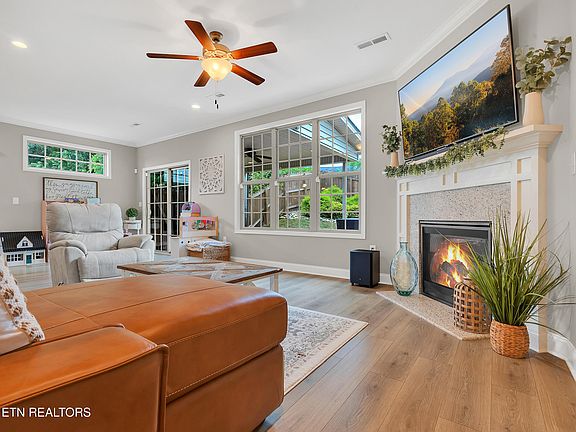 Experience stylish living in this immaculately maintained villa nestled in the heart of the Smokies. In the middle of one of the most desirable neighborhoods in the area, this residence offers the ultimate in low-maintenance, single-level living. The stunning home showcases premium features, including granite countertops, a spacious master bedroom with an accompanying bath with His and Her sinks, hardwood floors, and an open floor plan adorned with extensive trim and molding. Additional highlights include a fenced in backyard, gas log fireplace, and epoxy finish garage floor. The well-kept grounds are maintained, with the homeowners' association (HOA) covering lawn care, garbage pickup. weekly mowing in the summer months, landscape pruning & mulch once a year. Enhancing the community's appeal is an open-air pavilion featuring a fireplace, kitchen, and restrooms, creating a perfect space for gatherings. **ALL kitchen appliances and the hot tub convey with the sell of the property**