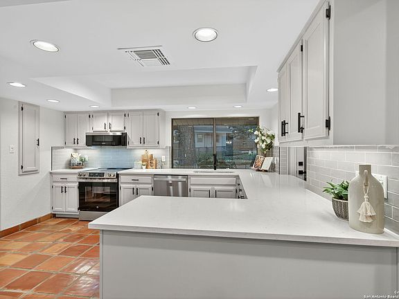 Open House this Saturday 11/8 and Sunday 11/9 1-3pm!!!! This stunning, fully renovated home in desirable Encino Park is truly one of a kind, offering space, style, and sophistication at every turn. With 4 bedrooms and 3.5 baths, including two primary suites-one upstairs and one downstairs-it's perfect for multi-generational living or hosting guests in comfort. The heart of the home is a stunning peninsula kitchen featuring quartz countertops, new stainless appliances, and seamless flow into the family room, where a fireplace serves as the warm centerpiece. Enjoy entertaining in the formal dining room with a built-in china cabinet, or unwind in the formal living area. The breakfast nook includes a built-in bar, and the spacious laundry/butler's pantry combo opens through French doors to the spectacular backyard. Step outside to your own private retreat with a waterfall feature, outdoor kitchen, hot tub, playhouse, and storage shed. The brick patio, crafted from antique bricks sourced from the Motherhouse of the Sisters of Charity of the Incarnate Word-founders of the University of the Incarnate Word-adds a touch of San Antonio history to your outdoor oasis. Located in highly rated NEISD schools, this home offers luxury, history, and charm-too many incredible features to list!