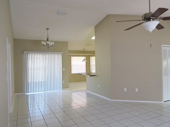 Move in Ready! This 3/2/2 home offers an open floor plan with tile flooring and laminate wood through out. Exterior and interior freshly painted, brand new stainless steel refrigerator, stove and dishwasher, master bathroom has been fully updated with dual sinks, guest bathroom has been updated with new flooring and cabinet. Screened in lanai with walkable path that leads around the house to an open paved patio.