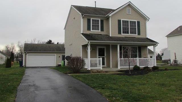 Two story home in Lake Forest subdivision in Hebron. Eat in kitchen with all newer appliances remaining. Open great room with gas log fireplace. New flooring throughout main level. 3 bedrooms, 2.5 baths, master has walk in closet, and bath. 2nd level laundry, front covered porch, patio, and two car detached garage. Home is in move in condition.