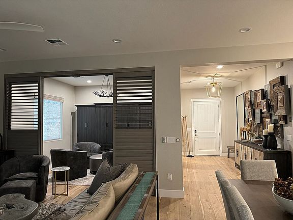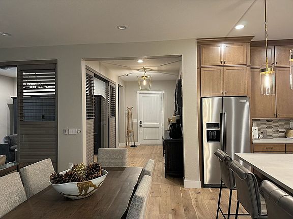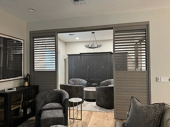 Better than new! Check out this fully upgraded move in ready home! Over $250,000 in upgrades. All closets done by NV Custom Closets. Epoxied garage with custom built in cabinetry. Two tone paint. Wood flooring (not LVP) throughout. Motorized window treatments throughout along with a custom bypass shutter to enclose the den, which includes a queen size Murphy bed. Toto Easley in all baths. Double lit mirrors in Master Bath. Brizo touch faucet, instant hot and dual built in soap dispensers in kitchen. Kitchen Aid refrigerator. GE stacked washer/dryer. Lutron switches (can be operated by your phone) throughout. High end lighting and fans in both bedrooms and living room. Dog lovers? Dog door leads to fenced dog run with artificial turf.