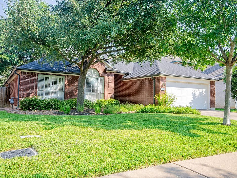 Discover a rare one-story gem in the desirable Oak Creek neighborhood. This beautifully updated home offers a perfect blend of modern style and classic comfort, all on a quiet, peaceful street. Inside, you'll find real wood floors in the living room, formal dining room, and all four spacious bedrooms as well as plantation shutters throughout creating a warm and inviting atmosphere. The updated kitchen is a standout with granite countertops, a large island, a gas stove, and ample cabinetry. Enjoy a unique air-conditioned sunroom with walls of windows, giving you an outdoor feel without the heat or bugs. Outside, mature trees shade the beautifully manicured front and back gardens. This home has been meticulously cared for and recent updates include a new roof in 2023, HVAC in September of 2022, and a new water heater in August 2025 all providing peace of mind. Located in the highly-rated Round Rock ISD, this home is just minutes from downtown Round Rock. You'll also have access to fantastic HOA amenities, including a large pool, a playscape, and a clubhouse. Don't miss this opportunity to own a charming, updated home in a premier location.