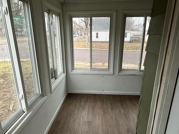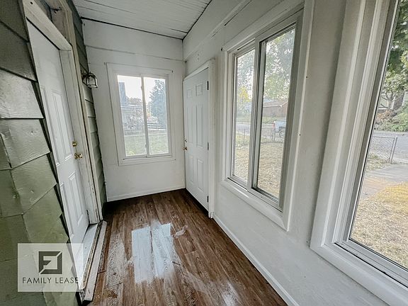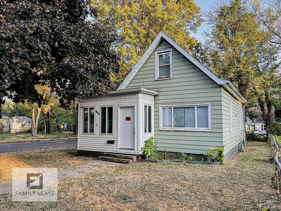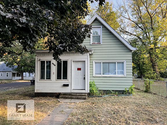 Comfortable 3 bed/1 bath home on corner lot. Nice green siding in good shape. Concrete walkway leads to front porch. Dual pane windows with blinds throughout. Cheery front living room. Spacious kitchen with solid oak cabinets in warm honey shade. Kitchen has plenty of cabinetry storage, a double sink, oven range and refrigerator included. Bathroom with low step shower. Unfinished basement. Big grassy side yard.