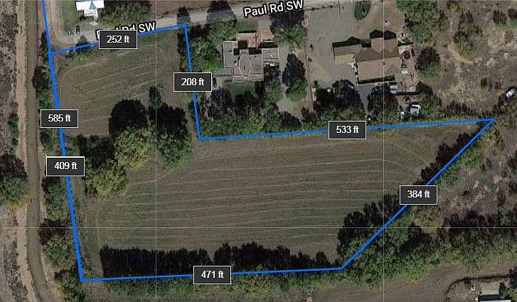 There are two separate deeds on this listing which compromises the 5.15 acres. They have to be sold together in order to provide access to the back adjoining 4 acres.This land has been used for raising alfalfa and pasture being irrigated with MRGCD water rights.Nice area of the far south valley with easy access to the interstate, Isleta Resort, lakes, golf course, casino, movie studios, airport and a Rail Runner station stop. Several thoroughfare routes into the city of Albuquerque. Privacy of the valley within minutes of everything in Albuquerque and a 60-70 minute commute to Santa Fe.Build your dream home and bring the ponies and the kids to fresh air and green acres.There are horses in this pasture so if you want to walk it contact Leslie who will make arrangements