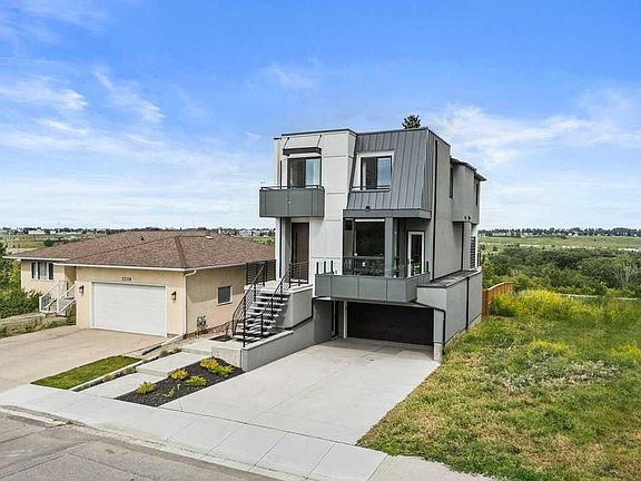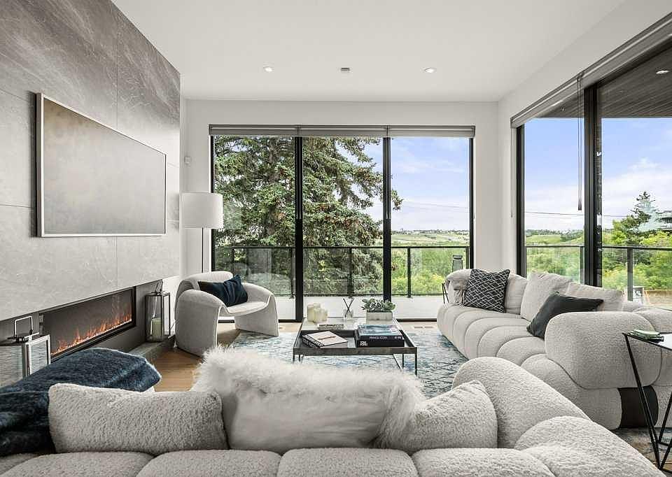 A modern masterpiece overlooking The Winston Golf Club! Clean lines, big windows + captivating views wrapped in a sleek architectural design. This nearly brand new, custom walk-out haven by West Ridge Fine Homes will impress throughout every level. Take in the nearly 3,200 sqft of finished interior space along with two additional exterior patios. Calling all entertainers: the amalgamated kitchen + living areas are designed for mingling, but built for memories. Enjoy the warm wood flooring, open + effortless layout, clear sightlines, tiled fireplace feature wall, picturesque windows + open riser stairs. Sit up to the sexy, curved quartz counter with extended waterfall feature. Moody two tone cabinetry along with drop-in range, stylish backsplash, exposed shelving and fully equipped butler's area discreetly positioned behind. Sit down with the entire family in the designated dining area - fully capable to host 10-12 guests. Head out to the extended patio to unwind with a beverage in hand, while tending to the BBQ and appreciating those private view points. Peer out to holes 16, 17 + 18 on the golf course or venture out the back gate to the off-leash dog trails. Get some quality work done in the large front office, providing views out front to watch for any arriving colleagues or clients. Up the stairs you will find the primary retreat complete with space for a king bed, a walk-in closet and spa inspired 5 piece bathroom consisting of a walk-in shower, soaker tub and dual vanities. Two other spacious bedrooms along with a sophisticated guest bathroom again smartly showcasing dual vanities. Don't miss the upper level laundry room along with a flex space, capable of providing another office or workout area. Let's finish up down on the walk-out level, which also has access to the double garage. This is a perfect area for movie nights, to build out that home gym or even host guests as a potential 4th bedroom. Rounding out the additional upgrades are air conditioning, full landscaping, recently installed fencing along with an entire window treatment package of $60K! This is your opportunity to live within nature in the heart of the city. This section of the community has seen many changes in recent years including a big investment by the city of Calgary into Midfield Heights, a 24 acre mixed use project off 16th Avenue. Secondly, The Winston Golf Club is full steam ahead on their brand new clubhouse project, which will provide an amazing $14M facility by summer of 2026. An irreplaceable location where glamorous meets the green and one where it feels like you can tee off from the backyard.