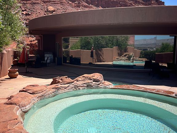 Soaring 10 12-foot ceilings enhance the sense of space, while the open-concept chef's kitchen, complete with a generous entertainer's island, is a culinary dream. The bright and airy family room opens seamlessly to a tranquil outdoor oasis, where a sparkling pool invites year-round enjoyment of Southern Utah's indoor/outdoor lifestyle..