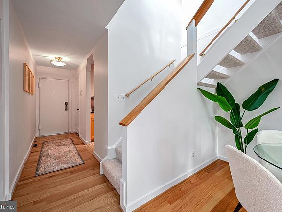 This truly stunning lofted unit in the highly sought-after Rock Creek Gardens community is a rare gem. With vaulted ceilings, skylights, and a functional wood-burning fireplace, this home offers a unique blend of charm and modern convenience. The living room and bedroom feature custom-built bookcases and cabinets, adding both elegance and practicality. Freshly painted from top to bottom, this condo is completely turnkey and ready for its next owner. The expansive main living area provides plenty of room for a generous seating arrangement and a dining area that accommodates 4–6 people, all set below the striking vaulted ceiling. The kitchen is a standout with its beautiful wood shaker-style cabinets, granite countertops, and stainless steel appliances. The expansive loft is a versatile space that can serve as a second bedroom, primary suite, guest area, home office, or additional living space. The home is flooded with natural light throughout, has in-unit laundry for added convenience, and boasts gleaming hardwood floors on the main level, with brand-new carpeting on the stairs and loft. Rock Creek Gardens is perfectly situated at the intersection of Chevy Chase, Silver Spring, and NW DC, offering the ideal combination of suburban tranquility and urban convenience. Nature lovers will appreciate being steps from Rock Creek Park, while commuters will love the proximity to Metro—just one mile away—and the soon-to-arrive Purple Line. Convenient bus service to Friendship Heights and downtown Silver Spring makes getting around a breeze. Local amenities are plentiful, including neighborhood favorites such as Parkway Deli, Daily Dish Café, and Rock Creek Sports Club, along with a grocery store, pharmacy, and Chinese takeout just moments away. Residents of Rock Creek Gardens enjoy exclusive access to the community’s outdoor pool and benefit from on-site property management. This lofted unit stands out not only for its design but also for its location within the community. Positioned on the second floor at the back of the building, it offers privacy and serene views of the beautifully maintained grounds, rather than the parking lot. Tandem parking right out front allows for two cars with one permit, ensuring easy access without long walks through the community to reach your door. Lovingly cared for by its current owner for over 35 years, this home is truly a hidden treasure. Don’t miss the opportunity to own this one-of-a-kind condo in an idyllic and highly sought-after community.