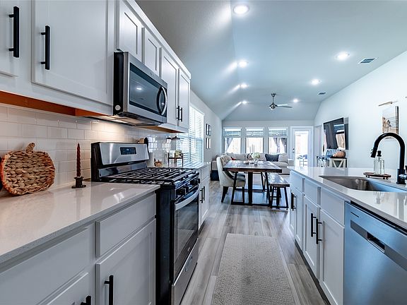 Beautiful brick one-story home featuring an open floorplan designed for effortless living and entertaining. The entertainers kitchen flows seamlessly into the dining and living areas, ideal for gatherings. Thoughtful split bedroom arrangement provides privacy, with all bedrooms comfortably carpeted. Step outside to your own retreat — a private backyard with extended porch area and cabana perfect for relaxing or hosting guests. Located in a highly desirable neighborhood offering scenic walking trails, peaceful fishing ponds, 2 community pools, splash pad for the little ones and an elementary school right within the community. Move-in ready and waiting to welcome you home.