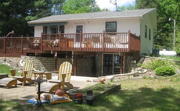 2 Ac Lot with Peninsula on Big Sandy Lake 585 Ft Shlin w/Panoramic View. Great Sand Shoreline on Point. 2 Bedroom Year round Walkout with Large Deck Lakeside. 2 Garages. One of a Kind Lot! Deck & BBQ Area with Rock Work on Point. Full Septic, Deep Well.