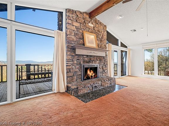Unique custom home sitting on 12 acres with incredible mountain views! Your very own sanctuary in the hills. Rock home built with entertaining in mind. Large living room with stone fireplace & cathedral ceilings with floor to ceiling windows to take advantage of the view. It opens on to the front deck -the perfect spot for your morning coffee and evening meal. The kitchen has more cabinets that you will know what to do with! Storage & work space has been maximized. Many of the cabinets have pull out drawers. All appliances included. The dining area is adjacent to the kitchen and open to the living room. There is a wonderful laundry room (washer/dryer included) with custom cabinets & a sink. The charming front bedroom has cute vintage wallpaper & built-ins plus a walk-in closet. The next bedroom has rustic wood walls & walk in closet. It offers views of the mountains-would be a great office. On the other side of the hallway is the 3rd bedroom-ready for your overnight guests. The hall bathroom has a tub/shower combo, solid surface counter & solid sink vanity. The primary suite completes the main floor. It has walk-in closet, door to the back of the home & a tray ceiling with chandelier. The primary bathroom features a solid surface vanity & walk-in shower. Downstairs is a half bath & two car garage. There is an oversized two car detached garage/shop that is heated & cooled with separate hobby area & storage. There is small pond that has many flowers & shrubs planted around it -your very own park! This amazing home is minutes to many opportunities for outdoor recreation: Wister Lake, Cedar Lake, Ouachita National Forest. Hunting, fishing, hiking & 4wheeling at your fingertips. 20 minutes to Poteau, OK and 45 minutes to Fort Smith, AR.