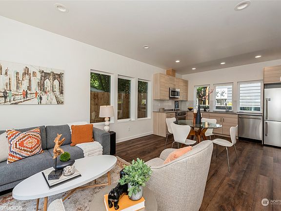Last available of 3 new homes in prime location just 1 block off Queen Anne Ave. This 3 bedroom detached new construction features quality finishes throughout with quartz counters, fully tiled baths and LVP flooring. Main floor features living room that opens to fenced patio area and single car garage off alley. 3 bedrooms make up the top floor with laundry, primary w/ double vanity, fully tiled shower and full hall bath. Efficient electric heat pump connected to air handler and wall unit provides heat and AC throughout every room. Blocks to shopping, grocery, restaurants and all that Queen Anne has to offer.