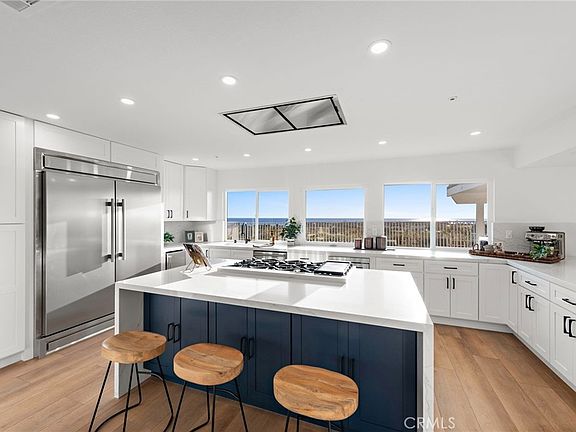 Situated in one of San Clemente’s most sought-after gate-guarded communities, this fully remodeled coastal home offers breathtaking ocean and Catalina Island views and an exceptional level of craftsmanship. No detail was overlooked in this top-to-bottom transformation, blending modern luxury with coastal elegance. Step inside to find soaring ceilings, brand-new wood luxury vinyl flooring, and custom designer finishes throughout. The gourmet kitchen is a true centerpiece, featuring a stunning blue oversized island with a waterfall countertop, an 8-burner built-in range, and a massive refrigerator. Enjoy ocean views from the kitchen windows, while the open-concept design seamlessly connects to the family room, complete with custom wood paneling, built-in cabinetry, and bi-fold doors leading to the expansive outdoor space. A stylish half-bathroom completes the lower level. Upstairs, all bedrooms are thoughtfully positioned for privacy and comfort. The custom-tiled staircase leads to the primary suite, which boasts a private balcony with panoramic ocean and Catalina views. The spa-like ensuite bathroom features dual sinks, a stunning dual-head shower, and designer lighting, creating a space of relaxation and luxury. The additional bedrooms all feature walk-in closets and the bathroom continues the theme of elevated design, with custom tile work and high-end finishes throughout. Outside, the beautifully landscaped backyard provides lush green space, ocean views, and a serene setting for entertaining or unwinding. Newly installed designer garage doors complete the home’s fresh, modern look. This turnkey coastal retreat has been renovated to perfection, offering an incredible opportunity to own a move-in-ready, ocean-view home in San Clemente’s premier community.