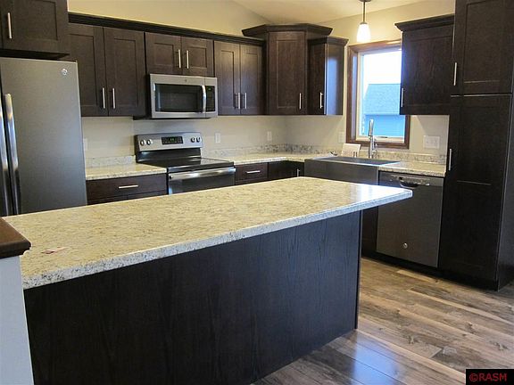 As you can see from the now finished pictures, many windows makes this bright and sunny rambler inviting! Two main floor bedrooms with one full bath and one 3/4 bath. The master bathtub is extra large to enjoy those relaxing bubble baths. Master bedroom has a large walk-in closet and a full master bathroom. Open plan with center island with eat off counter, Stainless Steel farm house style kitchen sink, vaulted ceilings, recessed lighting and energy efficient fixtures. GE Kitchen appliances in the desirable slate finish, ceramic tiled bathroom floors, full unfinished lower level offers future expansion for 2 additional bedrooms, 3/4 bath and large family room. Option to finish lower level add $27,952 or we can finish it up to what ever point you would like! High quality Andersen casement windows, High efficient gas furnace and water heater. There is a triple car garage and the exterior of this home is sided with seamless steel siding and there is brick to accent the exterior. The yard has been hydroseeded.