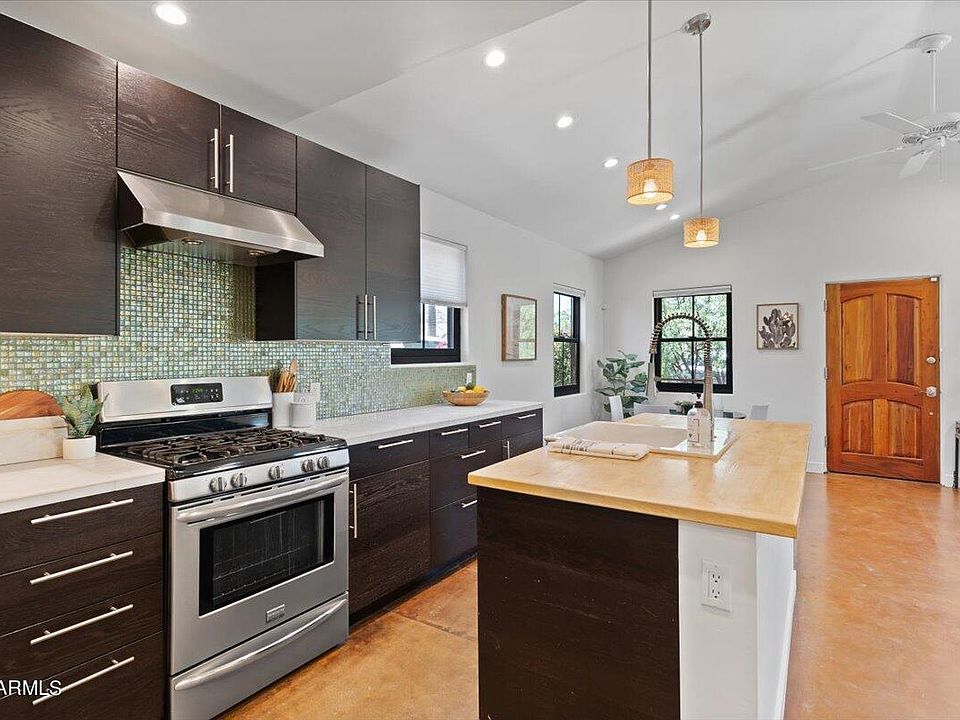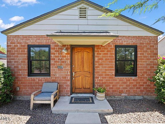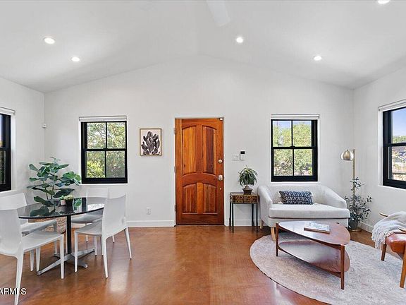 Experience the charm and elegance of this recently remodeled 1355 sq ft (see semi-private remarks) historic bungalow in the sought-after Coronado Historic District in downtown Phoenix. This light-filled home features a stunning great room and kitchen with beautifully stained concrete floors throughout. The kitchen is a chef's dream, boasting stainless steel appliances, marble countertops, and a striking glass mosaic tile backsplash. Enjoy the comfort and energy efficiency of top of the line *Anderson dual-pane windows and the eco-friendly benefits of water-wise landscaping adorned with multiple citrus trees. The property includes a vintage one-car garage and a lovely sail structure to cover extra parking spaces. New hot water heater, 2021 HVAC, 2020 roof, new landscaping with faux turf, trees, sprinkler system, sail shade, and architectural metal front fence. EV charging capability in garage with 220. *Located near the vibrant downtown Phoenix arts district, you'll have easy access to great restaurants, entertainment, and cultural experiences. Nestled in a cozy neighborhood, this bungalow offers the perfect blend of city living and a tranquil retreat. The lovely outdoor living spaces are ideal for relaxing and entertaining, making this historic home a delightful haven in the heart of the city.