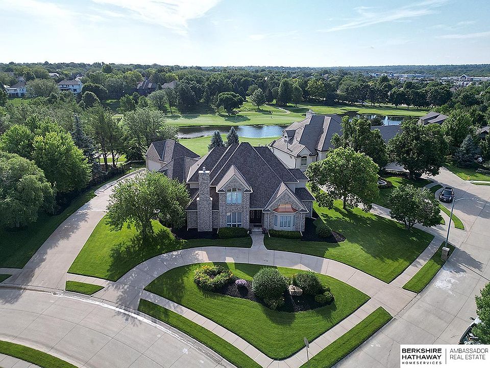 Prepare to be Impressed! As featured in new issue of Omaha Magazine, this 1.5 Story Jewel is Perfectly Positioned on a Premium Lot with Breathtaking Views of the 16th Hole at the Shadow Ridge Golf Course. Painstakingly Redesigned from Top to Bottom. This Home is a True Showcase of Craftmanship & Pride of Ownership! Featuring High-End Finishes, a Chef's Kitchen, Intricate Wooden Detail, Ceiling Treatments & Elegant Touches Throughout! A Bright, Open Floor Plan Featuring Soaring Ceilings & Windows, Spacious Main Floor Custom Designed Primary Suite Complete with it's own Fireplace, Deck Access, 2-Person Walk-in Shower & Dressing Room Closet w/Shelves & Drawers Galore! You'll find Additional Bedrooms upstairs with a Loft Space Perfect for a Gym or Guest/kid's Retreat. Enjoy your Morning Coffee or Shaded Evening glass of Wine w/the Recently Added 20,000 Pound Concrete Deck Watching Golfers while Newly added 750 SqFt Pool house w/Engineered floor adding THREE more garages, + Shady Pergola!