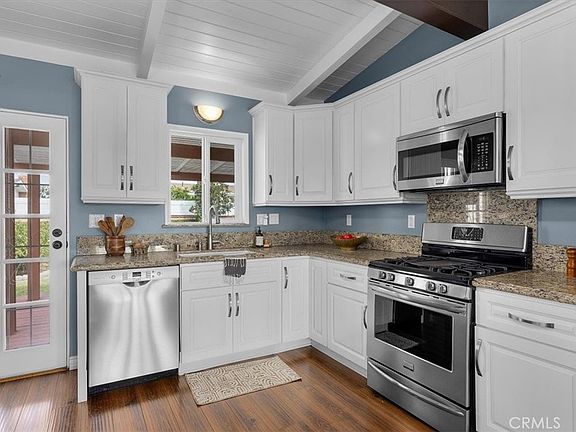 This charming remodeled residence features four spacious bedrooms, including two primary suites. The home boasts three well-appointed bathrooms and an updated kitchen with stainless steel appliances, granite countertops, and soft-close cabinets. This home is loaded with character featuring open-beamed ceilings and a stacked stone fireplace, complemented by wood floors throughout. The interior is bright and open. The backyard has a 120-square-foot storage shed, a grassy yard, a custom deck perfect for entertaining, and peach and tangerine trees. Additional highlights include air conditioning, copper plumbing, attic storage with a drop-down ladder, a two-car garage, and a large driveway accommodating multiple vehicles. Conveniently located just steps away from Cream Pan bakery, The Original Alfredo's Restaurant, Hoff's Hut, DuBunne Day Spa, Sur La Brea Park, and Wood Elementary School. Leave your car at home and enjoy the active South Bay lifestyle!