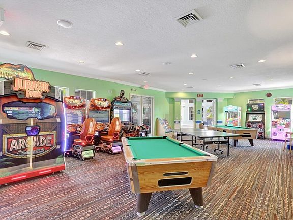 Montego Palms is located within Windsor Palms Resort, offering access to a community pool and spa, tennis, basketball, and volleyball courts, a fitness center, a clubhouse with a movie theater, arcade, and convenience store, and playground and picnic areas. Nearby attractions include Disney Parks at 8 minutes, Universal Studios at 20 minutes, Island H2O Live! at 10 minutes, and beaches at 1 hour and 15 minutes. Shopping and dining are just 3 minutes away.