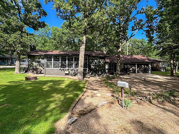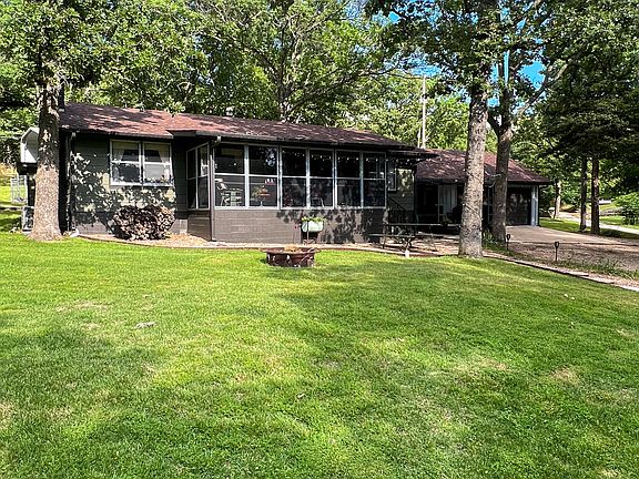 This charming lake cabin, located only a stone's throw away from Pomme de Terre Lake, is nestled among the towering trees, offering a perfect retreat from the hustle and bustle of daily life.  Upon stepping into the house, rustic charm and carefully designed features will welcome you. The abundance of windows fills the space with natural light, creating a warm and inviting atmosphere. Relax in the enclosed sunroom or unwind in the fenced backyard featuring a spacious RV carport and a tranquil retreat.The large kitchen is perfect for preparing meals and entertaining guests. Adjacent to the kitchen, the dining area provides a spacious area for family dinners or intimate gatherings. The living room's cozy fireplace invites you to curl up with a good book on a chilly evening.Both bedrooms are generously sized, offering plenty of closet space. The master bedroom features a half bath for added convenience. The full bathroom is designed with a combination shower and bathtub, ensuring comfort and functionality.Outside, the cabin's porch is the ideal spot for morning coffee or evening cocktails. The meticulously landscaped yard adds to the home's charm and the mature trees provide lots of shade. The two-car garage provides ample room for lake toys and vehicles.Whether you're looking for a weekend getaway or a permanent retreat, this cabin offers the perfect blend of rustic charm and modern amenities.