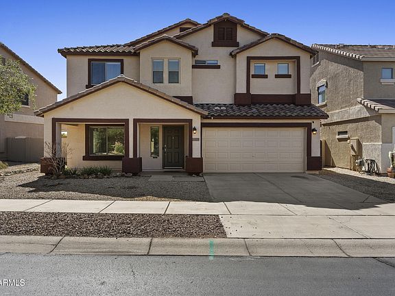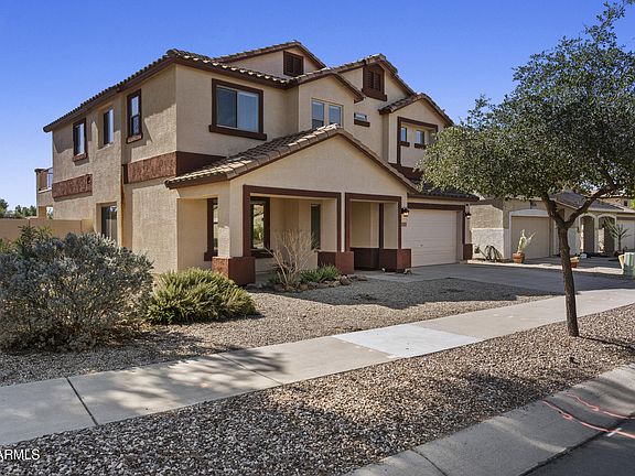 Nestled just off the 14th hole of the Las Colinas Golf Course, this two-story home in The Villages at Queen Creek serves up sunset views and space to spare. With 5 generously sized bedrooms and a versatile loft upstairs, there's room for everyone to live, work, and play in comfort. The open-concept kitchen, living area are flooded with natural light—perfect for hosting family and friends. Step out back and you'll find a large private patio that backs to wide-open fairway views, San Tan Mountain vistas, and a front-row seat to Arizona's show-stopping sunsets. Located in a walkable, tree-lined community near top-rated schools and just minutes from local favorites like Schnepf Farms, Queen Creek Olive Mill, and the vibrant dining and retail scene downtown—this home checks all the boxes for comfort, convenience, and charm.
