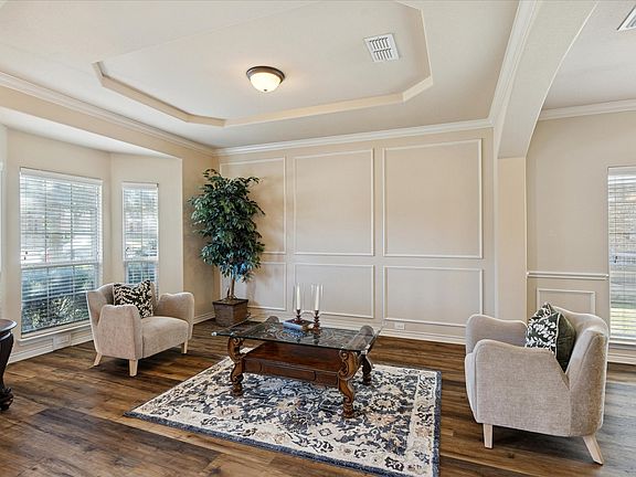 This stunning two-story residence offers 4 spacious bedrooms, 3.5 bathrooms, and unmatched entertainment spaces in one of the area’s most desirable master-planned communities. The highly acclaimed Arlington ISD schools makes this home a draw for a young family and will help maintain property values. Step inside to soaring ceilings, abundant natural light, and gorgeous extensive luxury vinyl plank (LVP) flooring throughout the downstairs living areas—durable, waterproof, and effortlessly stylish. A dedicated home office with French doors provides the perfect work-from-home sanctuary. The primary suite is a private downstairs retreat, complete with dual vanities, garden tub, separate shower, and a walk-in closet that is conveniently located near the laundry room.The chef-inspired kitchen features granite countertops, a huge island with breakfast bar, stainless steel appliances, double ovens, a walk-in pantry, and a brand-new updated gas cooktop with sleek vent-a-hood for serious cooking and easy cleanup. Open to the family room with its cozy corner fireplace, this heart-of-the-home layout is perfect for gatherings large and small.Ultimate Upstairs Entertainment Zone Upstairs, discover a massive game room already equipped with a full-size pool table that conveys with the home—ready for instant fun, tournaments, or family game nights. Movie nights will never be the same in the fully equipped media room with high-definition projector, giant screen, surround sound, and all equipment conveys with the home! Three additional oversized bedrooms and two full bathrooms provide flexibility for guests, teens, gym space, or craft rooms.This move-in-ready masterpiece combines modern upgrades, family-friendly flow, and resort-style living in one incredible package.