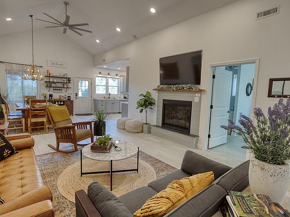 FULLY FURNISHED!!! Constructed in 2021, This immaculate modern cabin sits on 1.28 treed acres! The exterior boasts handsome dark board and batten siding and expansive patios take advantage of impressive views. The stunning interior shows like a model, 3 bd/ 3 bath, and a bright open floor plan made for gathering. Little details throughout set this property apart. Wall heaters in bedrooms, Heat lamps in bathrooms, Gas Fireplace, Tankless water heater, A/C, SS appliances, Quartz countertops, Jacuzzi bathtub in 2nd owners suite, 9' ceilings in bedrooms, 14' vault in great room w/ amazing antler chandelier and incredible ceiling fans. Lots of electrical upgrades and NO HOA! R30 Insulation Envelope. Building materials incl. SIPs panels ICF block foundation, metal roof w/40 yr life expectancy.