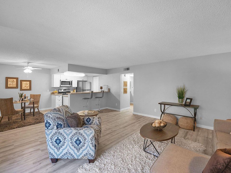 Welcome to the desirable Biltmore area! This recently remodeled ground floor unit has everything you need and more. From its beautiful vinyl plank flooring, soft close white cabinetry, stainless steel appliances, granite countertops and newer water tank/AC unit to its spacious living room and eat-in dining room with 2'' blinds - this home offers a perfect blend of luxury and comfort. Enjoy your morning coffee on the patio overlooking the lush green lawn and beautiful landscaping. Amenities include a community pool, spa, and clubhouse where you can relax with friends or family. Plus, you're just steps away from the Biltmore Fashion Park for shopping, restaurants, gym and movie theater - live in the heart of it all!
