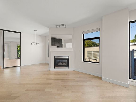 Corner homeStylish upgradesRecently refinished maple floorsSpacious open-plan kitchenLarge windowsNatural lightPeaceful park views