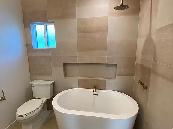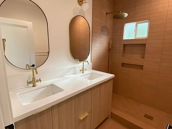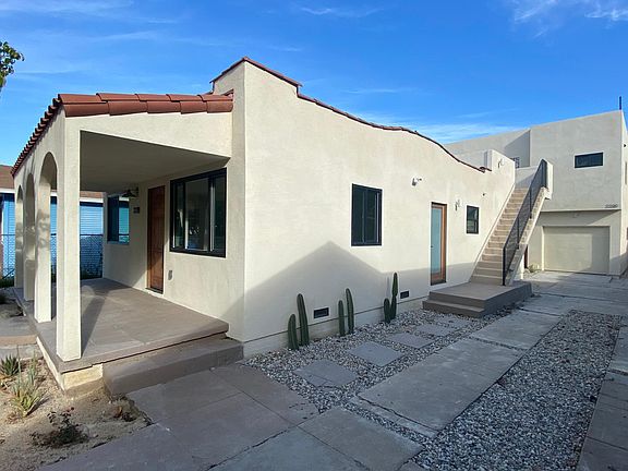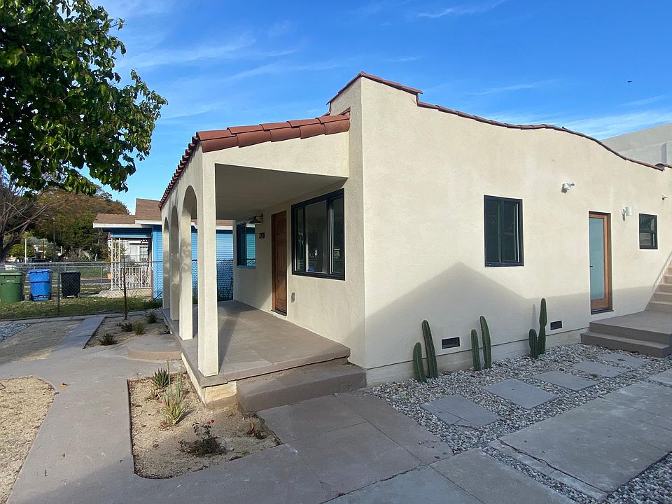 This beautifully remodeled 3-bedroom, 2-bathroom modern Spanish-style home is part of an exclusive two-home compound, offering high-end finishes and thoughtful design. Featuring 1,125 square feet of living space, this property was meticulously renovated by a top-tier developer just over a year ago. The kitchen boasts sleek quartz countertops, stainless steel appliances, and stylish gold accents, while the bathrooms offer luxurious finishes, including a freestanding soaking tub and rainfall showers.