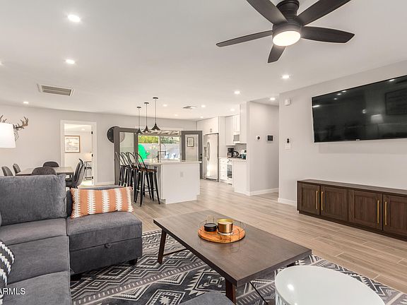 Location, location, location! 2 minutes from the greenbelt, Eldorado park, water park and minutes from old town and tempe! This stunning turn-key and remodeled home w/an RV gate is waiting for its new owner! Come inside to find a sleek interior showcasing four bedrooms, fresh paint, Newer wood-look floors throughout, updated ceiling fans, chic light fixtures, and recessed lighting. The spacious great room w/a cozy fireplace is an excellent area for receiving guests. The immaculate kitchen offers SS appliances, white shaker cabinets, quartz counters, and large island w/breakfast bar. Have a good night's sleep in the comfortable main bedroom w/a private bathroom and a custom closet. Fourth bedroom could also flex as a den or home office. Newer 5 ton HVAC and newer roof.