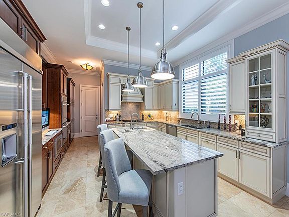 Fabulous 4 bed plus den 4.5 bath home perfectly situated on the large lake in Traditions. This home has been upgraded in numerous areas including Wolf/Jenn-air professional appliances, custom closets throughout, electric rolling shades and plantation shutters on all windows, custom bar/wine cooler off dining room with refrigerated drawers, custom storage system in garage, plus much more. The home entertains quite well with the screened in travertine lanai, summer kitchen and whole house music. One of the best locations for privacy and all that Grey Oaks has to offer.