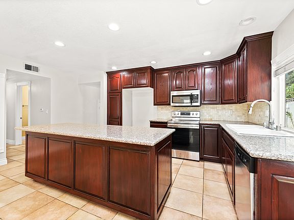 3 bedrooms, 2 full baths down! Available now! Featuring a total 4 bedrooms and 3 updated bathrooms and 1,781 sq ft of living space. Completely rebuilt inside and out! copper plumbing/mixer valves and fridge water, remodeled gourmet kitchen granite counters, island & all appliances, new LED lighting, ceiling fans in every bedroom complete paint, new 200 amp elec panel, switches coverplates & more! The oversize garage has been epoxy coated and has full storage above. Patio was recently rebuilt, central refrigerated A/C just serviced as well as roof tuneup! Front yard is all artificial grass and gardener is provided for low maintenance. 3 br+2ba down & bonus room or 2 potential bedrooms with 1 full ba up.