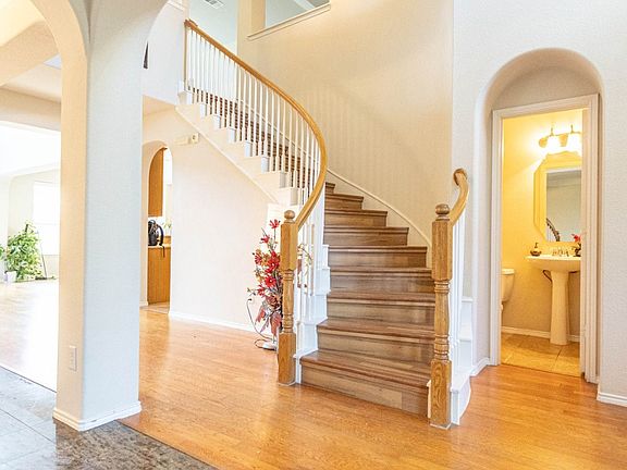 Inside, you’ll find marble floors, soaring high ceilings, a formal dining room, family room, living room, and private office. The upstairs level includes a family room, generously sized secondary bedrooms, and an open entertainment area with a view overlooking the downstairs living spaces, creating an impressive sense of openness and connection throughout the home.