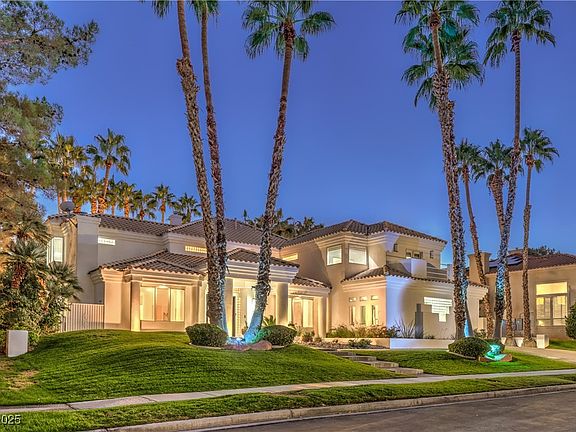 Located in the prestigious guard-gated community of The Fountains, where opportunities are rare, this exceptional 4,747 sq ft custom home sits on a deep interior lot surrounded by single-story homes for maximum privacy. The property boasts over 25 mature palm trees, a 5-car garage, and RV parking with full hookups—an extremely uncommon combination in this coveted gated community. Inside, the 2-story layout offers 4 bedrooms, 4 bathrooms, central vacuum, and generous living spaces filled with natural light. The lush backyard features a sparkling pool, spa, and mature landscaping, creating a serene retreat within one of Henderson’s most exclusive and sought-after guard-gated neighborhoods.