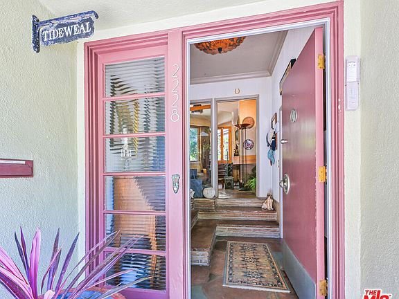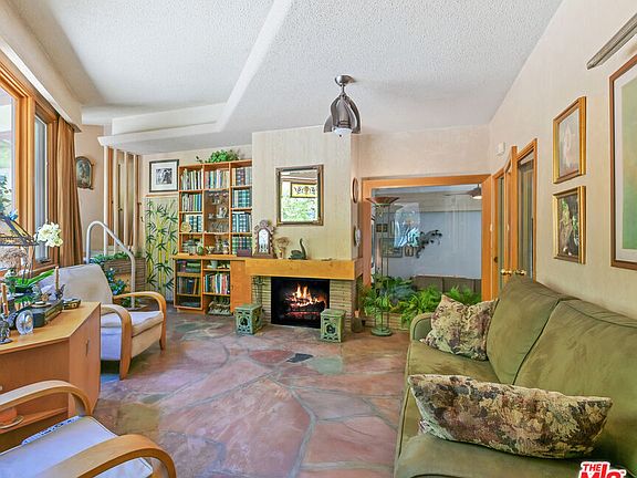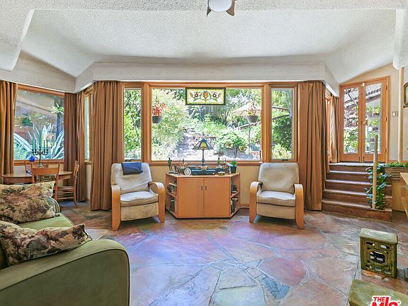 First time on the market in nearly 50 years, this prime Beachwood Canyon custom-built mid-century exudes extraordinary craftsmanship and quality, with art-deco design elements and stylish flourishes throughout. Located on a quiet cul-de-sac, this wonderfully private home enjoys a magical garden (complete with a spa grotto and waterfalls) that cascades to a spacious, secluded dining patio. Orange, lemon and lime trees, red bark maple, sequoia, fountains and flowers make it a haven for hummingbirds. Over-sized windows bring the outdoors inside, with a lovely flagstone floored den and a striking stack-stone fireplace. The spacious living room maintains the connection to nature with an interior window that affords a lovely garden view from every angle. The well-proportioned floor plan exhibits an excellent utilization of space that belies its compact footprint. Two bedrooms, with an ingenious double bathroom between them, a vintage kitchen, a delightful Marilyn themed powder room, excellent storage, a laundry room, and an oversized two-car garage complete this lovely home. Close to the Beachwood Cafe and Market and the hiking and riding trails of Griffith Park and just minutes to vibrant downtown Hollywood, this private, peaceful home is the perfect Hollywood haven.