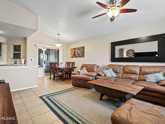 Perfect for first-time buyers or those looking to downsize in style. This 3BD/2BA home sits on a private .12 acre with panoramic Catalina Mountain views and no neighbors behind. The interior features fresh interior paint (Jan 2025), stone tile floors, upgraded bathrooms with black fixtures and a spacious primary suite with a soaking tub, separate shower and large walk-in closet. The kitchen offers stainless steel appliances including a gas range, new dishwasher (June 2025), and newer refrigerator. Smart home upgrades include an Ecobee thermostat, Kasa switches, and a MyQ garage opener with camera. Water heater replaced Dec 2022. Enjoy a screened-in porch, two-car garage, and easy living in a serene setting. Buyer to verify all facts and figures including those in MLS.