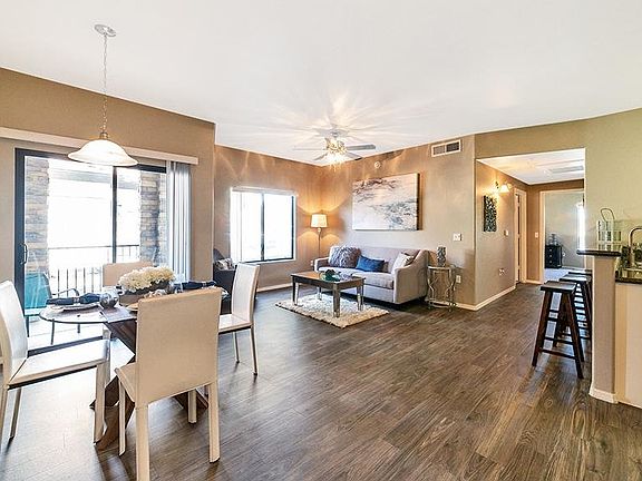 Along the quiet suburban streets of Queen Creek, Town Center Apartments provides the ideal getaway with renovated apartments and a wide array of upgraded amenities. Town Center offers one, two, and three bedroom apartments ranging from 662 square feet to 1,180 square feet. Every newly redesigned home features a spacious floor plan with hardwood-style floors. Behind a sleek granite breakfast bar, a gourmet kitchen gleams with stainless steel appliances, tile backsplash, brushed nickel fixtures, and white cabinetry. The fully equipped laundry room and elegant bathrooms incorporate the same custom cabinetry, countertops, and fixtures. Bedrooms comfortably accommodate furniture of all sizes and include walk-in closets. A private patio or balcony offers an additional outdoor storage option. USB ports and a Wi-Fi-enabled thermostat are available in each apartment.