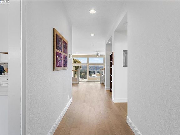 Gorgeous Updates & Views in Prestigious Palomares Hills! Enjoy the comfort and privacy of a single-family home feel in this spacious townhome. This home features brand-new bright quartz kitchen countertops and backsplash, freshly painted cabinetry, new interior paint, and sleek new waterproof wood flooring. The versatile floor plan includes a convenient downstairs bed and full bath—perfect for guests or multi-gen living—as well as a large storage closet that can be transformed into your own personal wine cellar. With 2,379 square feet of thoughtfully designed living space, this home showcases some of the most spectacular canyon and partial bay views in the neighborhood. Freshly painted and featuring a newer fence, this move-in-ready home offers modern comforts like air conditioning, ceiling fans, and central heating. Upstairs, enjoy three additional bedrooms, including a spacious primary suite with double closets. Residents are treated to resort-style amenities including multiple swimming pools, tennis, basketball, and pickleball courts, scenic walking trails, a community park, private security patrol, and more. Located within the award-winning Castro Valley School District and offering easy access to shopping and major freeways, this home blends style, comfort, and convenience!