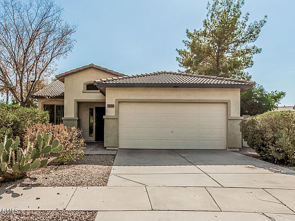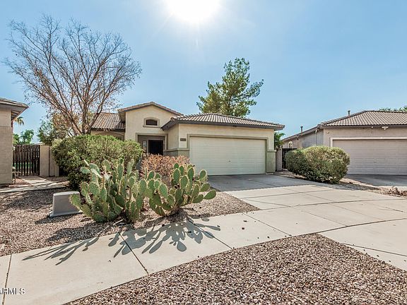 Fantastic turnkey home in the Villages at Queen Creek is a must-see! This home offers 3 beds, 2 baths, mature landscape, & a 2-car garage w/cabinetry. The inviting interior features tons of natural light, neutral palette, tile flooring in common areas, and soft carpet in bedrooms. The impressive eat-in kitchen boasts SS appliances, granite counters, ample white cabinetry, and French doors to the back. The 2-tier peninsula with a breakfast bar, overlooks the large living area, creating a great room effect! The primary bedroom has a walk-in closet and a full bathroom with dual sinks. Tranquility awaits in the spacious backyard! Perfect for relaxation and gatherings with a covered patio, extended pavers, a grassy area, and multiple trees for a constant breeze. Make it yours!