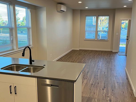 This modern home, nestled on a private street, offers luxurious living with high-quality touches. Spanning 1,313 square feet, the layout features luxury vinyl plank flooring, quartz countertops, and stainless appliances. The open-concept design on the lower level encompasses a living room, dining area, and a kitchen with a peninsula bar. The well-equipped kitchen includes a refrigerator, stove/range with hood, microwave, dishwasher, and double sink with a garbage disposal. Enjoy added convenience with an included washer and dryer on the lower level. The unit boasts an energy-efficient ductless HVAC system with a mini-split heat pump for year-round comfort. A well-insulated 1-car garage, along with two additional parking spaces, offers ample vehicle storage. With a monthly rent of $2295 for this spacious 3-bedroom home, the first month's rent serves as the deposit. Please note that tenants are responsible for all utilities. The prime location provides easy access to Bender Field, Bender Plaza, and nearby walking trails, making it a haven for outdoor enthusiasts. One small dog or cat is allowed. A $100 monthly pet fee will be added to the rent. All pets must be approved by the landlord prior to move-in and kept in compliance with the rental agreement. Upstairs, you'll find a primary bedroom with an attached full bath, accompanied by two more bedrooms and an additional bathroom. Don't miss this incredible opportunity to reside in a beautifully designed home. Contact us today to schedule a viewing or gather more information! Tenant pays utilities $35 nonrefundable credit/background check No Smoking 1 year lease 1 garage, 2 additional parking spots