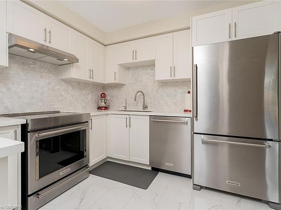 Beautiful brick freehold town features many upgrades and recent renovations. (list attached) Full Kitchen renovation w/ quartz counters, S/S Kitchen Aid appliances, new painting throughout. Lovely and private back garden with Stone patio & steps, fully fenced. Professionally landscaped front & back. 3 Bedroom, 2 ?? Bathroom impeccably-maintained home that is move in ready. Parking for 2 cars in the driveway & 3rd spot in Garage. Loads of natural light! Many energy-efficient features. Close to everything! Shopping, trails, schools, parks, golf and so much more. All renos professionally done to high standards. Make this home yours and add additional sq ft in the lower level should you wish to fully finish. Private crescent in a tucked away setting. Lovely indoor & outdoor living! 2023-08-14
