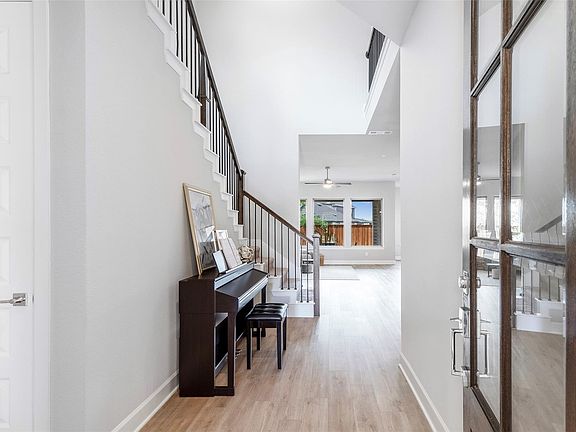 Highly desired FRISCO ISD schools! This stunning like new home is located in Kings Court and is MOVE-IN ready! You are greeted by a gorgeous two story formal entry. Light colored LVP flooring throughout the first floor. The open layout is bright with walls of windows and creates ease for entertaining. Cozy up next to the gas fireplace or cook away in the beautiful bright white kitchen with gas cooktop and black quartz countertops. The Primary offers a large soaking tub and separate full glass enclosed shower. 2 additional bedrooms, a bathroom and a game room are also on the second floor. Laundry is a breeze with a convenient upstairs location! The backyard is spacious and offers a covered patio and a BOB wood fence.
