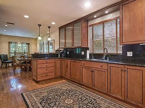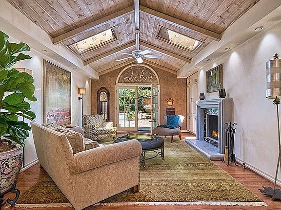 This 2BD/2BA ~2,000 sqft traditional home is located in the highly-desirable neighborhood of Beverlywood. Step through a double-door into a foyer which leads to an impressive living room with dramatic vaulted ceilings, skylights, recessed lighting, French doors, and gleaming hardwood floors. Venetian plaster lines most walls and allows light to reflect from one room to another. A spacious kitchen showcases stainless-steel appliances, custom-made cabinets, and granite counter tops. A dining area is adjacent to the kitchen, as is a laundry room. The master bedroom has a travertine fireplace, floor-to-ceiling windows, and a walk-in-closet. Master bath has dual sinks, spa tub, water closet, and an oversized step in shower. Another large bedroom (with access to a bathroom) has French doors to the backyard. The backyard area is a "secret garden"-like setting with lush, colorful vegetation and a soothing fountain.