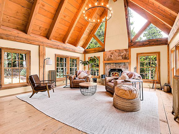 The heart of the home is a soaring great room, complete with a vaulted ceiling, wood-burning fireplace insert, built-in bookshelves, and panoramic windows that frame the beauty of every season. The kitchen is thoughtfully designed with luxury appliances and premium finishes, opening to a sunlit dining nook wrapped in windowsan ideal spot to linger over morning coffee or share meals with friends.